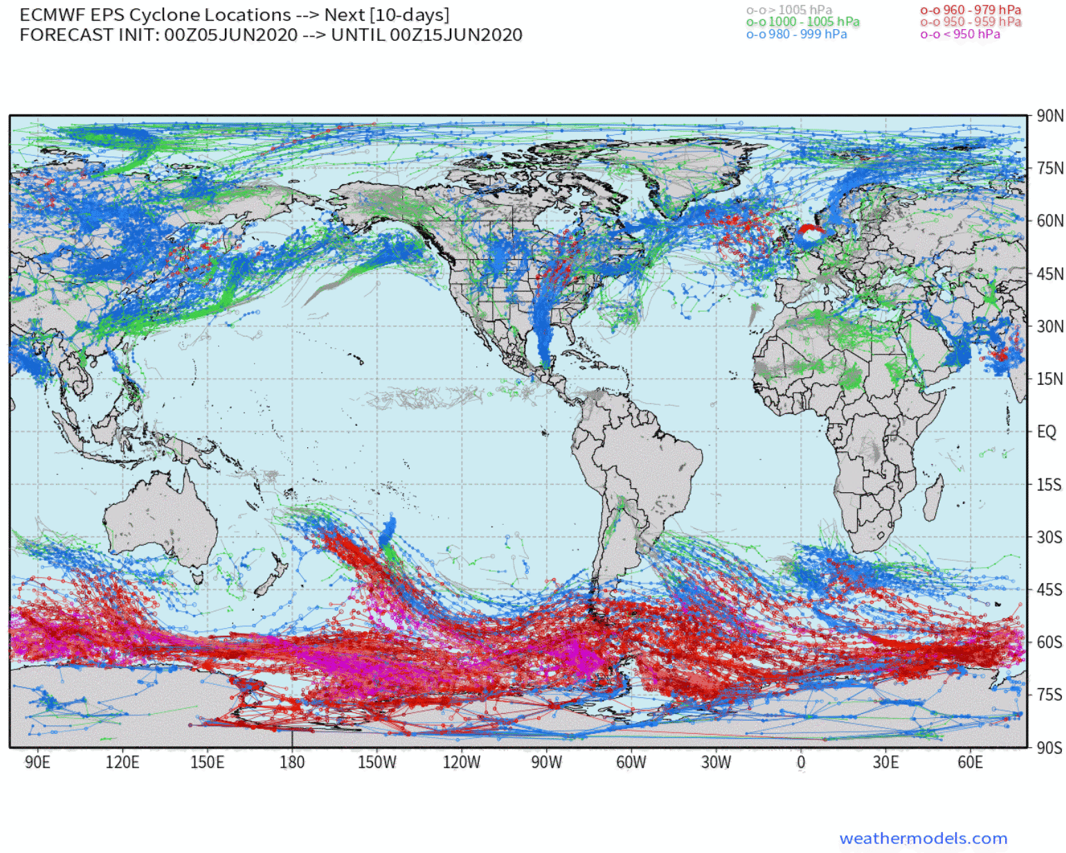 Overall the tropicals are very silent with currently no activity in the Eastern or Western Pacific basins forecasted over the next 10 days which is a bit unusual for this time of year. In the Atlantic, the next best chance will likely be a result of a cut-off low that gets cut off near Bermuda later next week. If this occurs it is often a good opportunity for subtropical or tropical cyclogenesis to occur, but this would likely not be an impact on the insurance industry. Overall for the next two or three weeks we could see limited tropical development in the Atlantic until the last week of June. The next wave of tropical activity will likely start the first week of July.