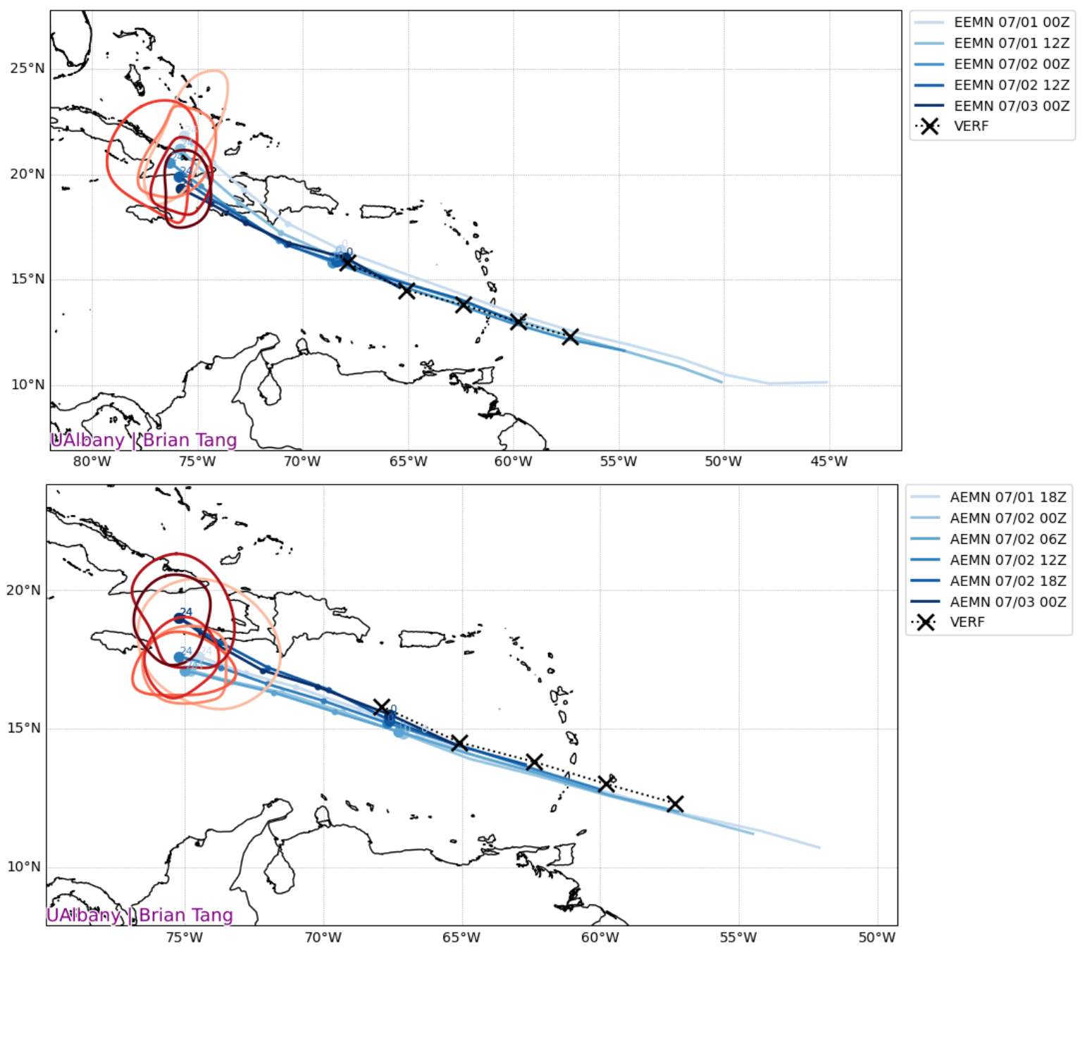 Yesterday’s BMS insight went into great detail discussion on which forecast model might be the better model given the great amount of uncertainty in the track and intensity forecast. Now that we have a few days of track and intensity forecasts to verify from Elsa we can see that Elsa appears to be tracking near the northern edge of the GFS forecast guidance and near the southern edge of the ECMWF guidance. In terms of intensity, the ECMWF missed the intensification of Elsa yesterday as it tracked over the Windward islands, but looks like it correctly forecasted the hostile conditions that Elsa would struggle with as it approaches Cuba and Hati today. The GFS on the other hand picked up on the early intensification of Elsa in the Windward island, but failed to pick up on the weaker state of Elsa as it approaches Cuba and Haili today. This is why it is sometimes good to blend the forecast, especially when there are so many unknowns factors that could come into play. A blending of forecasts is often what the human forecasters do at the National Hurricane Center and why they have one of the best track and intensity forecasts, as pointed out yesterday.