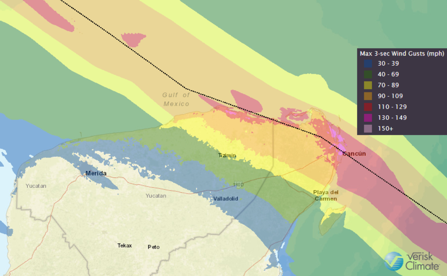 At this time, the insurance industry should expect at least a Category 2 hurricane at landfall along the central Gulf Coast where again, as we have seen, this season track will be critical. We're still several days away, and climatology would suggest that Delta should reach peak intensity over the Gulf and be somewhat weaker by landfall. However, Delta will be tracking much faster, and its fast forward motion will mean for much larger impacts inland away from the coastline.