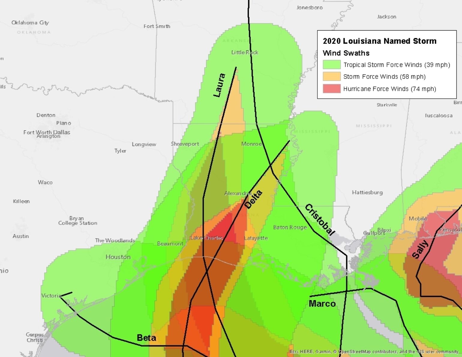 The land interaction with the Yucatan will be crucial as to what happens to Zeta once it moves back into the southern Gulf of Mexico on Tuesday. Water temperatures along southern portions of the Gulf of Mexico can support a major hurricane, so similar strengthening to hurricane Delta should be expected; however, unlike Delta, it does not appear that Zeta will grow in size (radial extent) as Delta did. With Zeta being a much smaller-sized storm the maximum intensity will likely only be a Category 2 hurricane and the limited size could limit insurance industry loss impacts along the Gulf Coast, particularly storm surge impacts. Due to the uncertainty in the interaction with the Yucatan and the development of winter storm over the southern Great Plains, the model guidance has been shifting to the west over the last several days. On Friday, for example, the potential tracks had Zeta moving up toward the Panhandle of Florida, but the constant shift in tracks to the west seems to bring in the possibility that Delta could make another landfall in the already hard-hit state of Louisiana. In fact, the newest ECWMF ensemble model guidance from last night shows the real possibility that Zeta could make landfall within 10 - 20 miles of the same location as Hurricane Laura and Delta from this season. It should be noted the ECMWF has shown a leftward track shift several times this season that has not verified. For example, Laura had a shift into Houston, Texas, and Delta a shift into Port Arthur, Texas that did not verify. The National Hurricane Center forecast continues to offer a landfall over southeast Louisiana near New Orleans, which coincidentally has been one of the only areas of Louisiana that has not experienced the full effects of a named storm this season. This could indeed increase the insured losses given a large amount of exposure in the New Orleans and Baton Rouge area.