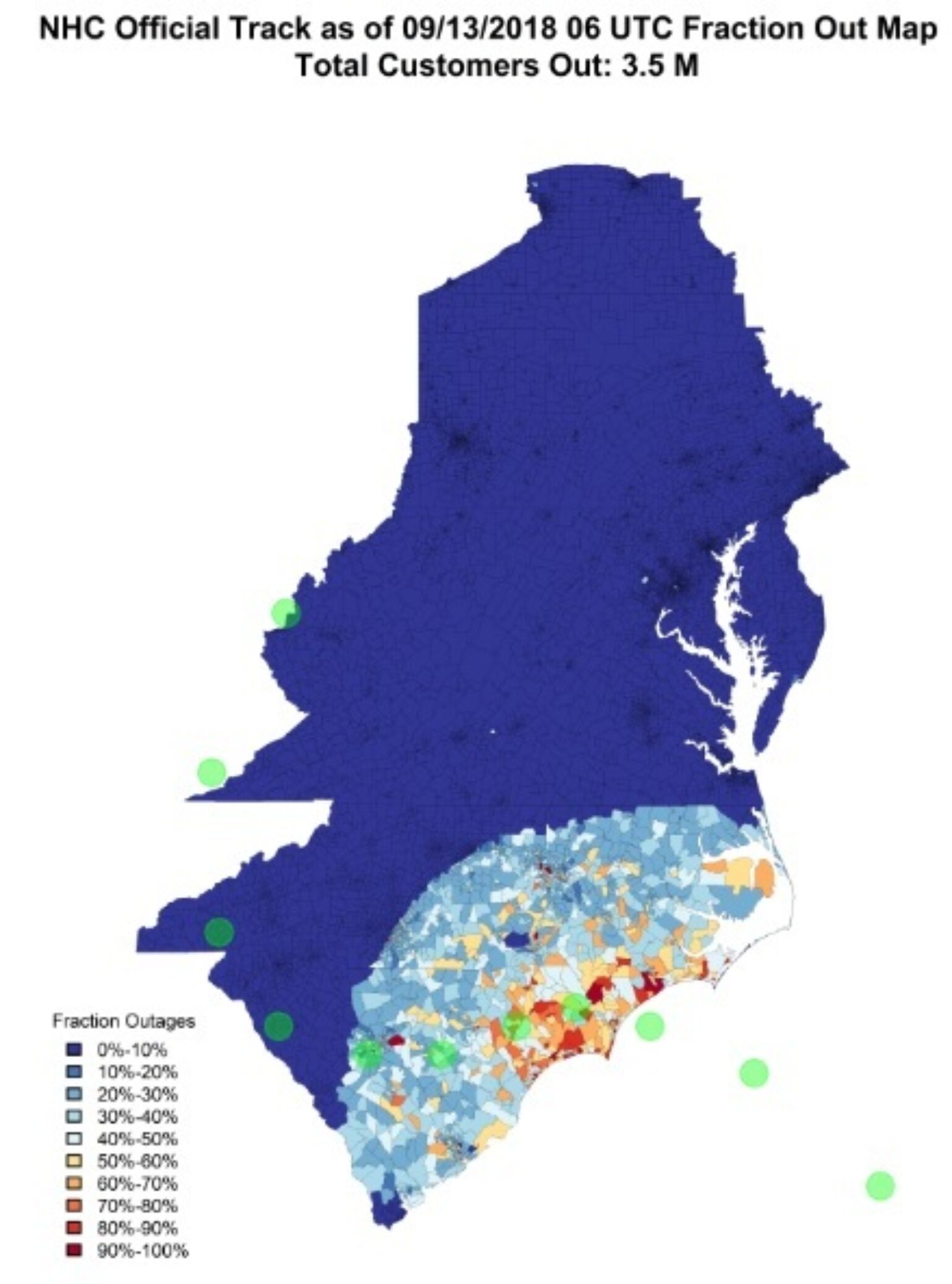 Tropical storm-force winds (39-plus mph) are expected to arrive in the hurricane warning area by early this afternoon. Hurricane-force winds (74-plus mph) may arrive by this evening. Even though Florence is expected to be much weaker than initially thought, it does not mean that wind damage won’t occur. Numerous downed trees and long-lasting power outages could occur near where Florence’s center strikes and even further inland. Both Hurricane Ike 2008 and Hurricane Sandy 2012 were large hurricanes in size and had a wide range of impacts.