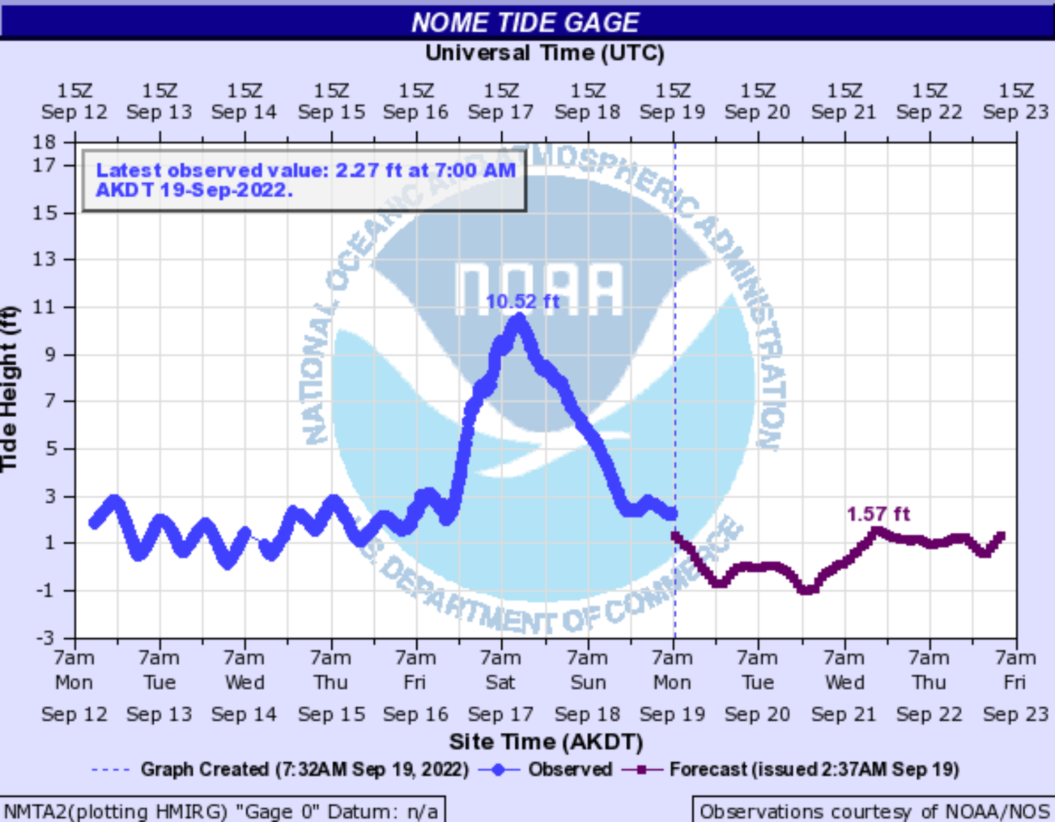 One of the difficulties in understanding this major storm's overall impacts in western Alaska is the lack of real-time tidal observations. About 1,000 miles separate the observations from Nome to Port Heiden, AK. There are dozens of small isolated communities that have been impacted by high water. Based on the readings at Nome, which topped out at 10.52 feet, the water level along much of the coastline likely exceeded both the Superstorm in 2011 and another storm in 2004. The highest water in the modern era was approximately 12’ from a significant storm in 1974. Social media and reports have verified that considerable impacts have occurred to many coastal communities that will have significant clean-up and a very short time to get resupplied in time before dark, cold winter is fast approaching.
