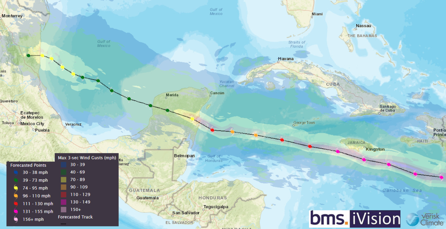 Beryl is expected to emerge into the southern Gulf of Mexico on Friday night. After that, various outcomes remain possible, such as a second landfall in Mexico or along the U.S. Gulf Coast late this weekend. More than a handful of ECMWF ensembles curve from Texas to Louisiana into the U.S. Gulf Coast. Nonetheless, this number is about 20% of the total. Therefore, at this time, there is a probability of U.S. insurance industry impacts at about 40% across Texas, with the likelihood of Louisiana still at 5%, as suggested yesterday.