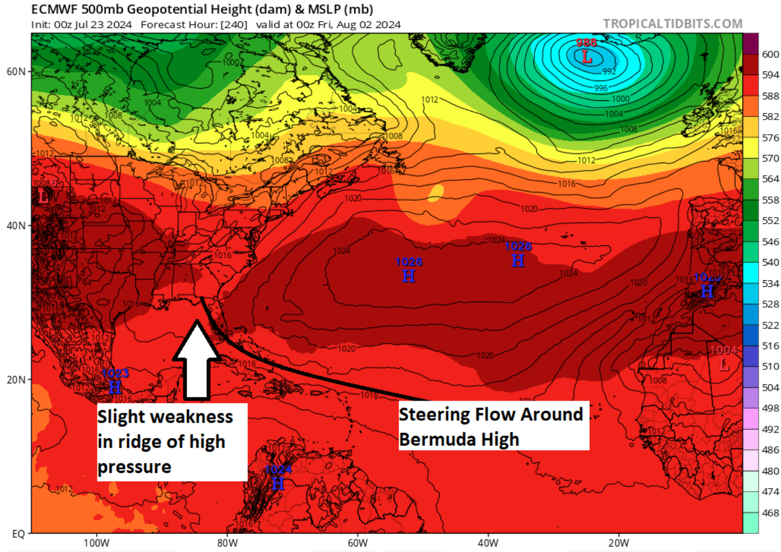 This leads to the question: if the spring is loaded, where will storms track, given the expected weather pattern? The Northern Plains and Upper Midwest may be in for yet another round of severe weather from late this weekend into next week. This will likely be a result of the mid-level jet and associated lift aligning with impressive summer moisture and instability as a ridge of high pressure builds over the deep south with Texas-based heat. This strong ridge seems to be connected with the Bermuda High, which would allow the storm to track more toward Florida and into the Gulf Of Mexico.