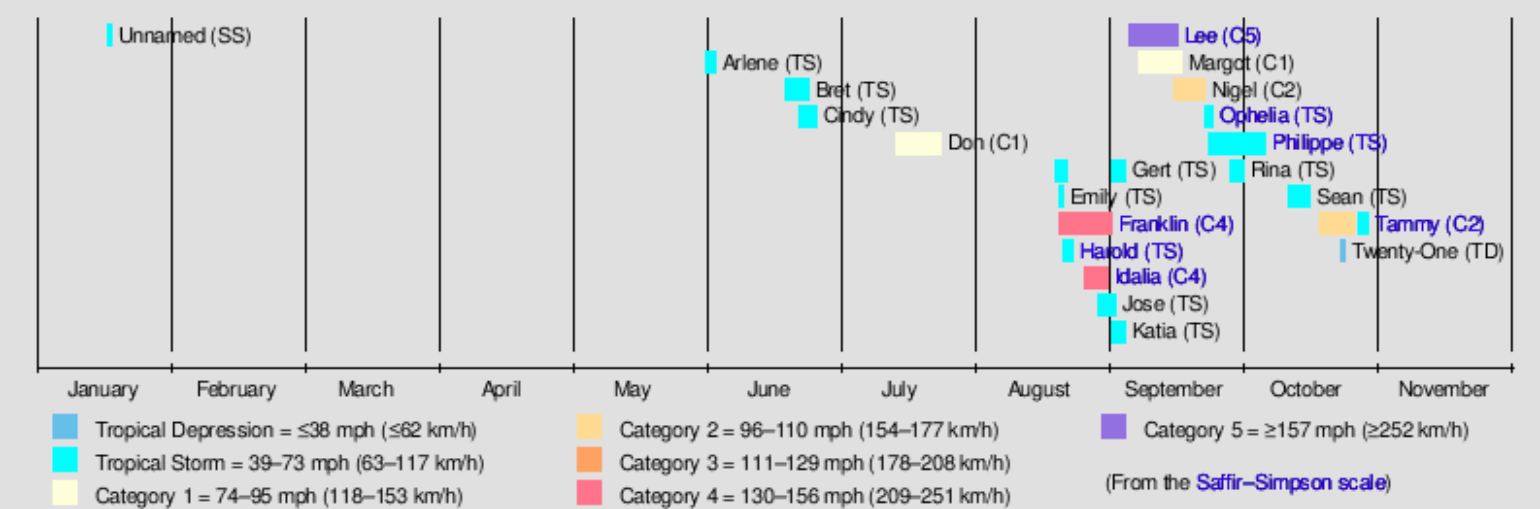 In terms of activity, one aspect of the season that stands out is the overall lucky period that resulted in a relatively long gap in activity heading into the heart of the season from July 26th to August 19th. This was when the basin failed to produce a named storm, yet on the flip side, non-stop named storm activity occurred from August 20th through October 6th, a remarkable 48 days spanning Emily through Philippe.