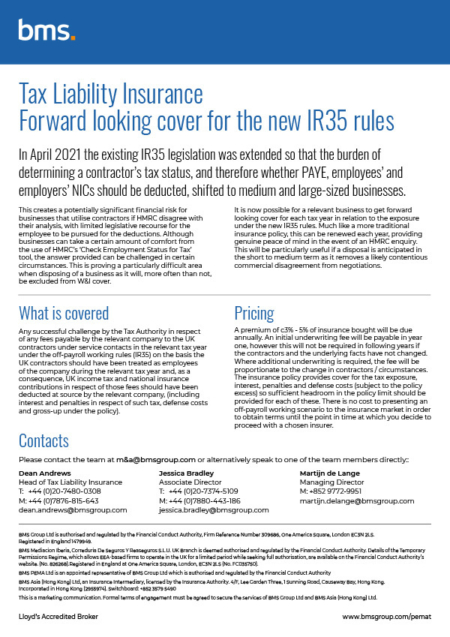Tax Liability Insurance: Forward looking cover for the new IR35 rules Format: FLIPBOOK August 5th, 2021 View Flipbook
