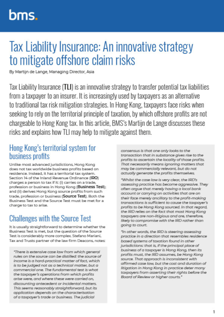 Tax Liability Insurance: An innovative strategy to mitigate offshore claim risks Format: FLIPBOOK February 16th, 2021 View Flipbook